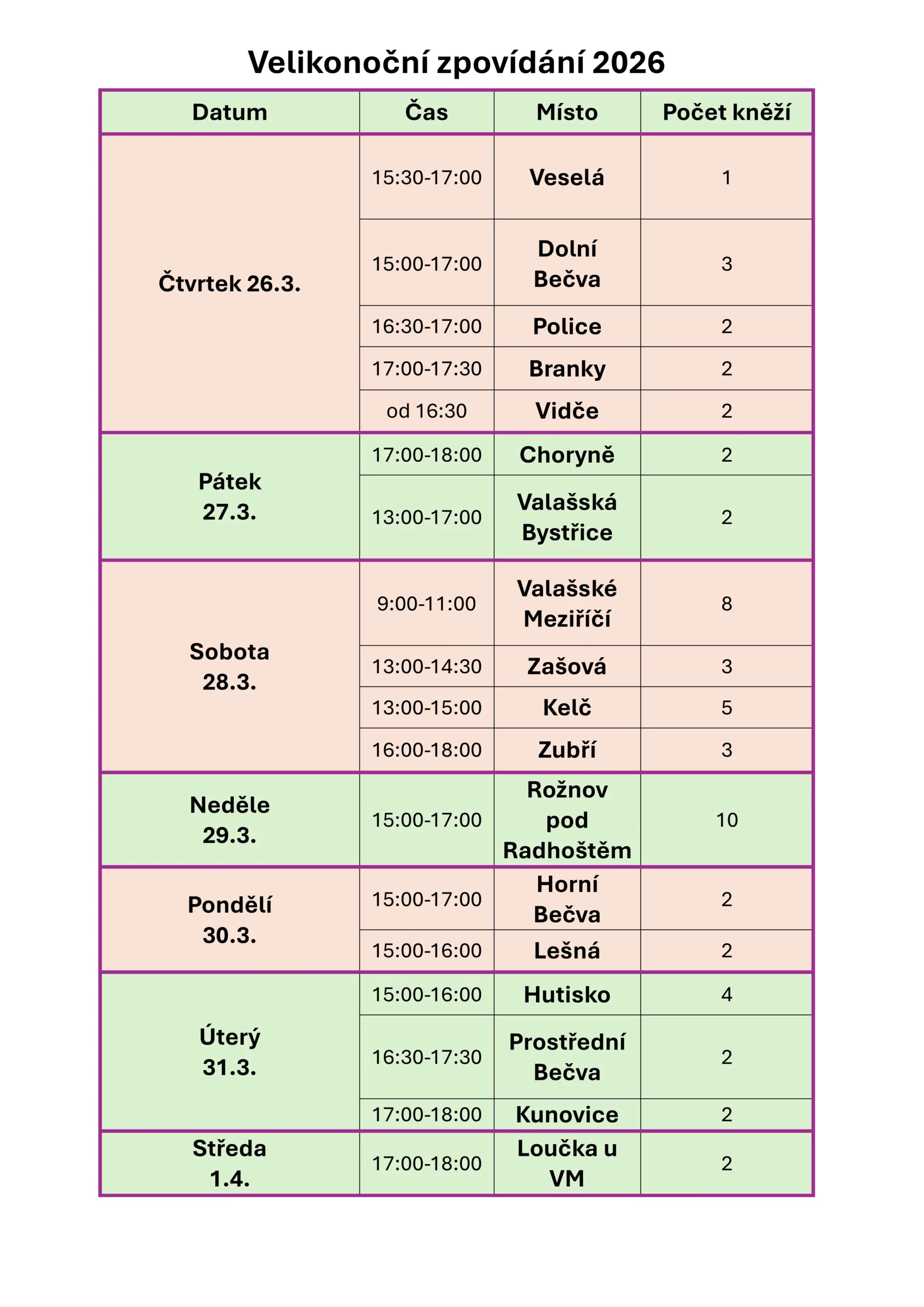 Velikonoční zpovídání v naší farnosti v pátek 27. 3. 2026